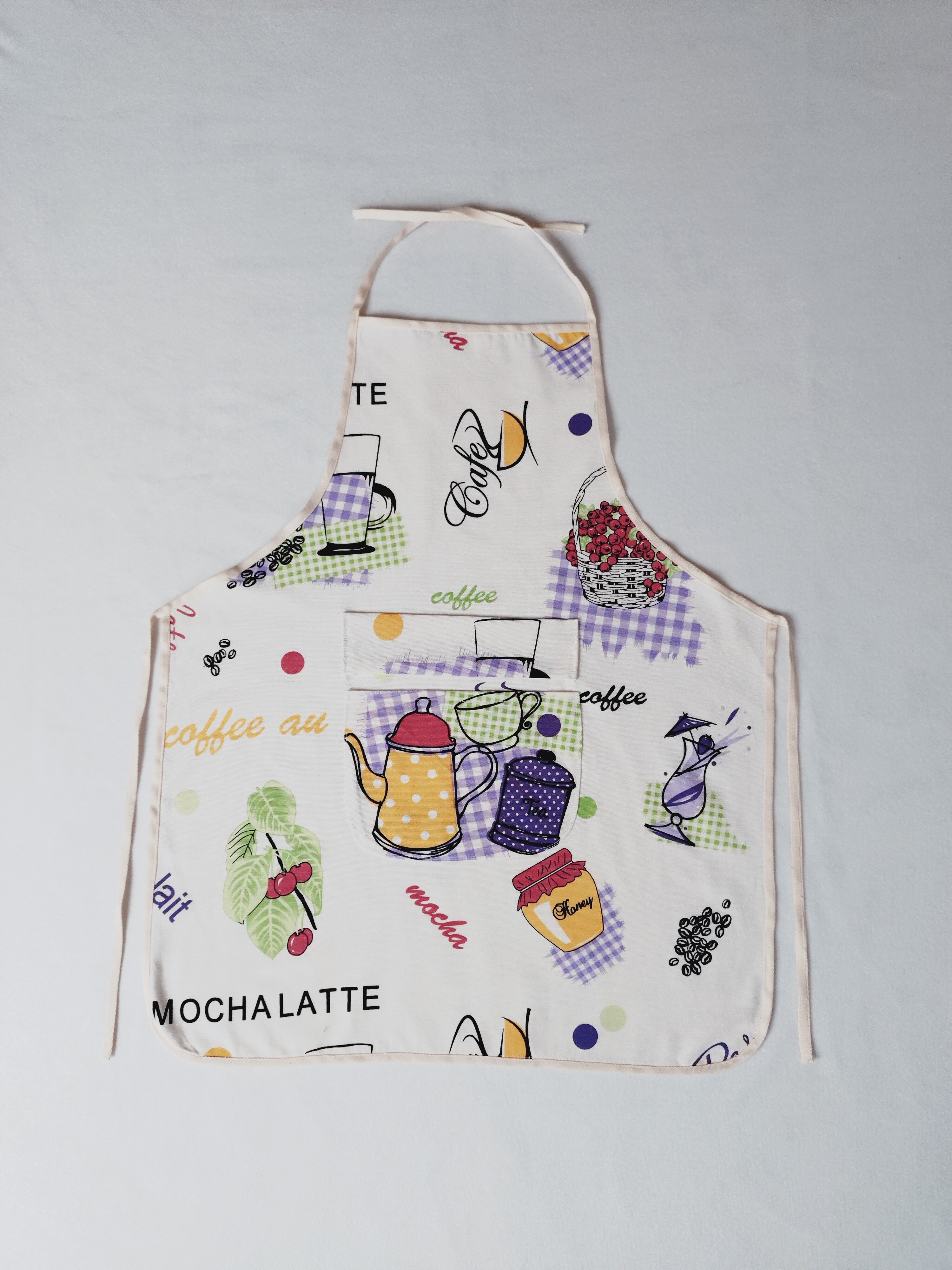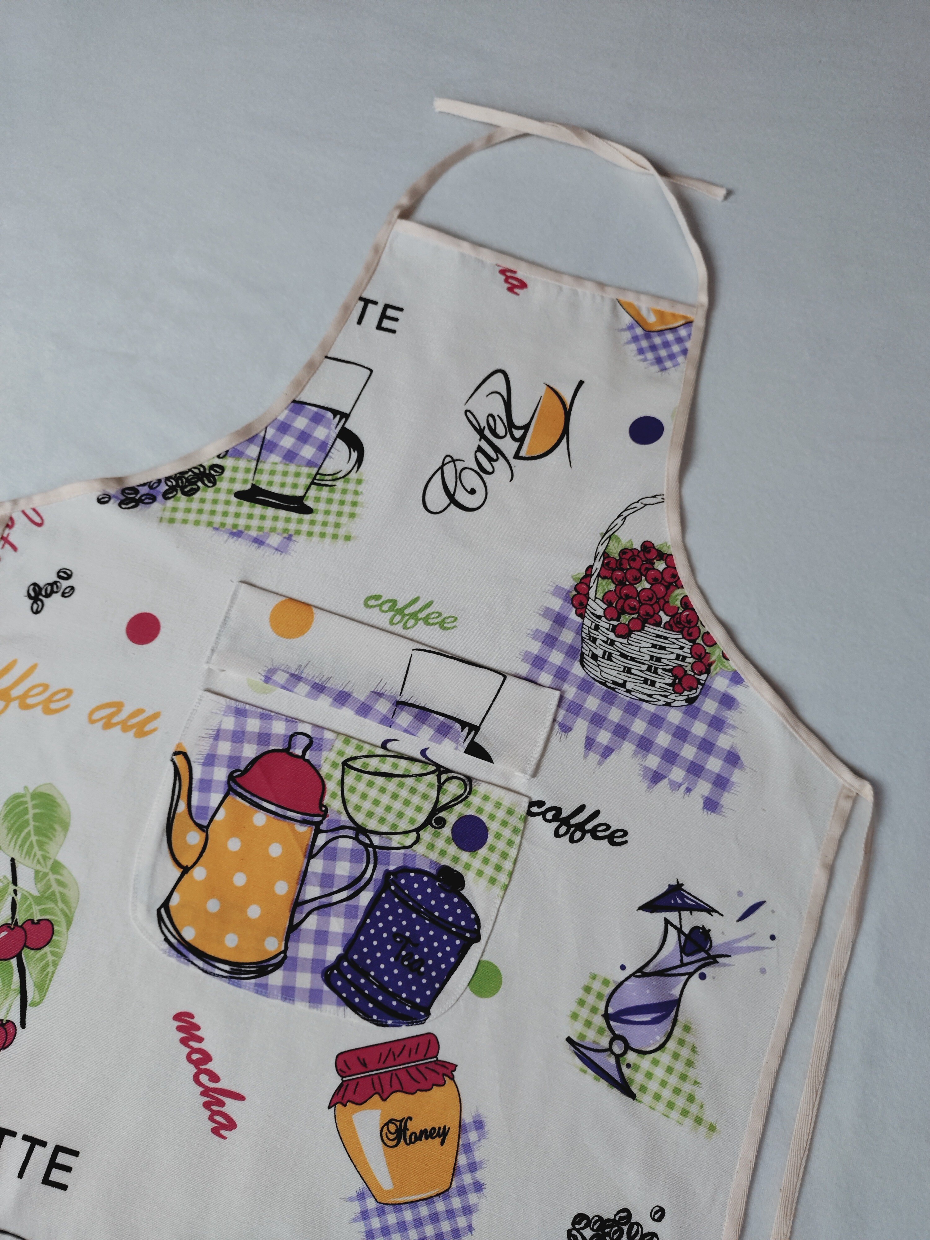Stylowy fartuch kuchenny ecru z kolorowym motywem naczyń, akcesoriów i produktów kuchennych to niezastąpiony element podczas gotowania. Wykonany z wysokiej jakości tkaniny bawełnianej, zapewnia skuteczną ochronę odzieży przed zabrudzeniami i jest łatwy w pielęgnacji. Uniwersalny rozmiar i praktyczne wiązanie gwarantują wygodne dopasowanie, a kolorowy wzór dodaje uroku każdej kuchennej aktywności. Idealny zarówno na co dzień, jak i podczas specjalnych okazji w kuchni. Świetny w duecie z fartuszkiem dziecięcym.